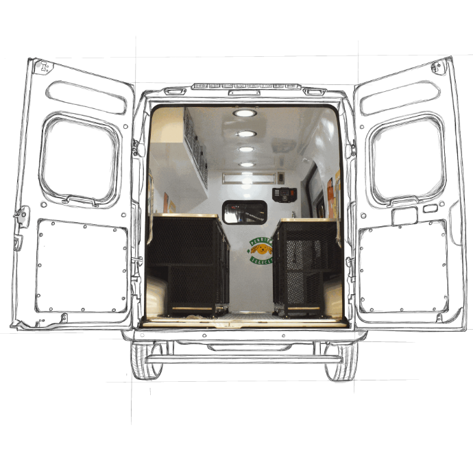 Unidad veterinaria móvil para el traslado y atención inmediata de perros u otros animales de tamaño chico o mediano.