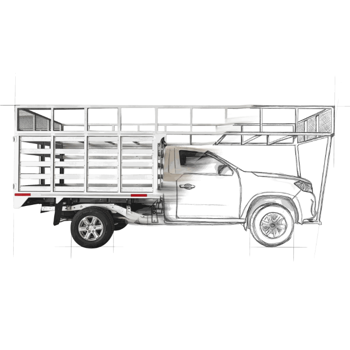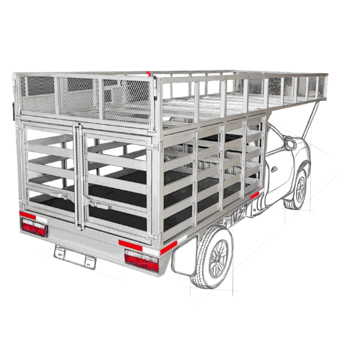 Estructura y forma de la carrocería diseñada en lámina negra al carbón doblada en frío cal 14 y 12 con redilas con forro a base de madera.