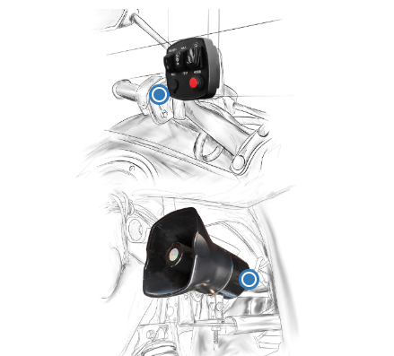 Cuenta con botonera para manipulación de estrobos, torretas, sonido y micrófono.
