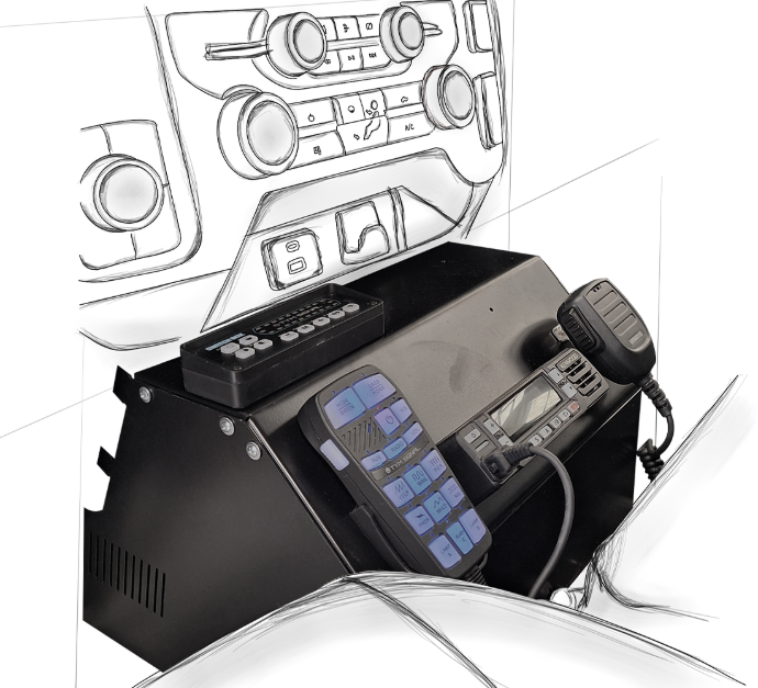 Compartimento para instalar radio sirena, Radio de comunicación y controlador de Torreta.