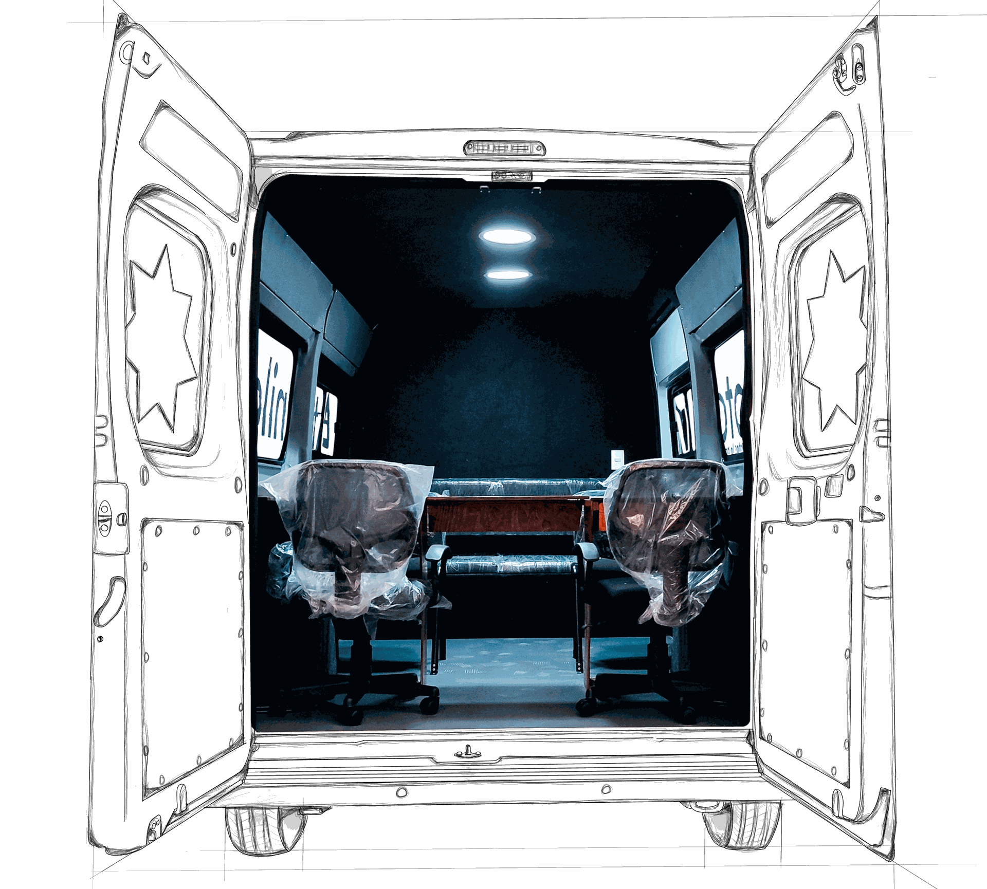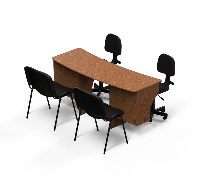 Con dos sillas secretariales con ruedas para la fácil operación adentro de la unidad.