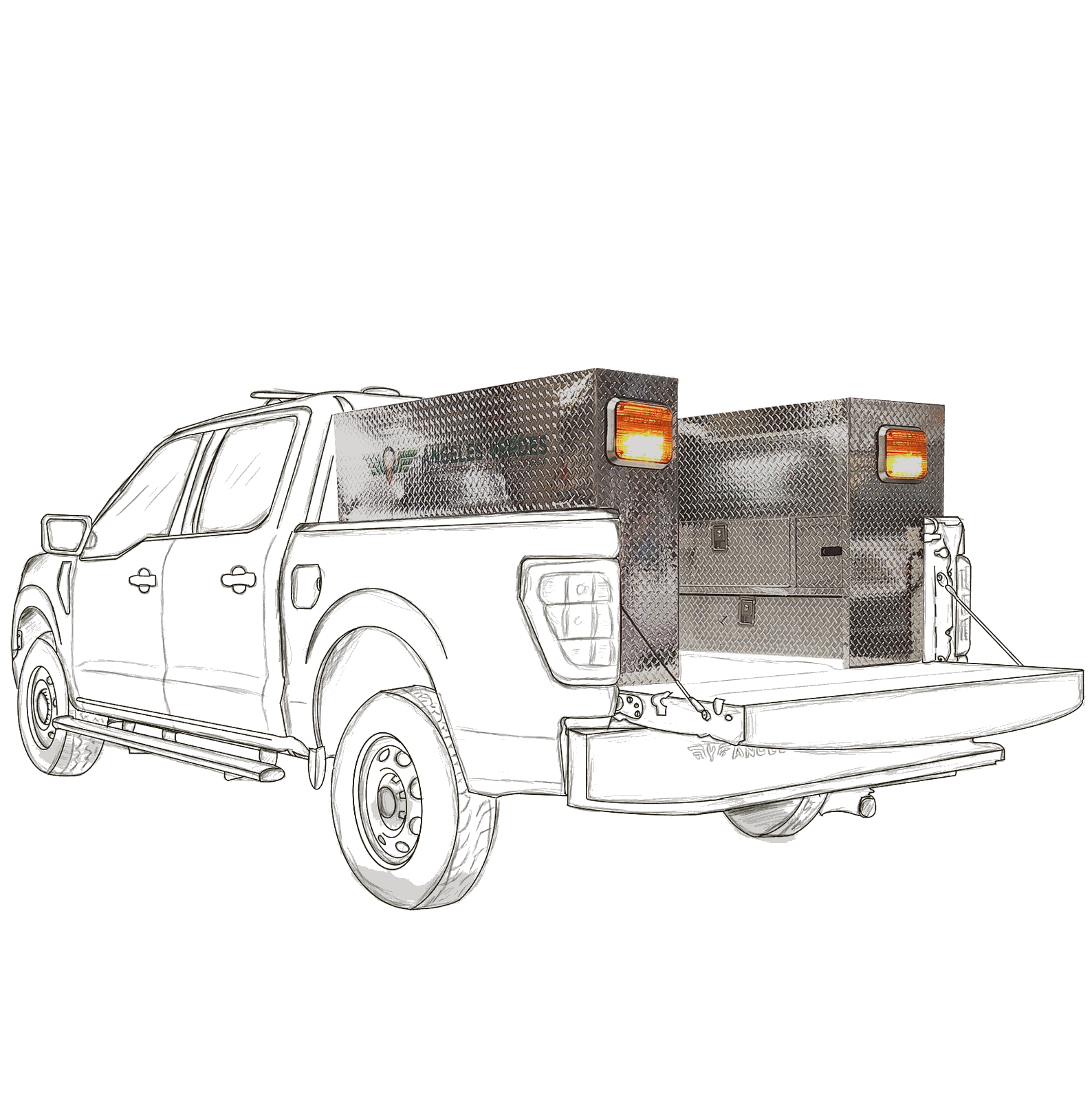Diseñado con cuatro puertas laterales, dos superiores abatibles tipo gaviota y dos inferiores corredizas, fabricadas en lámina troquelada cal. 14 y placa de 1/4" con seguros independientes.