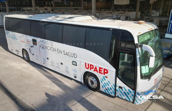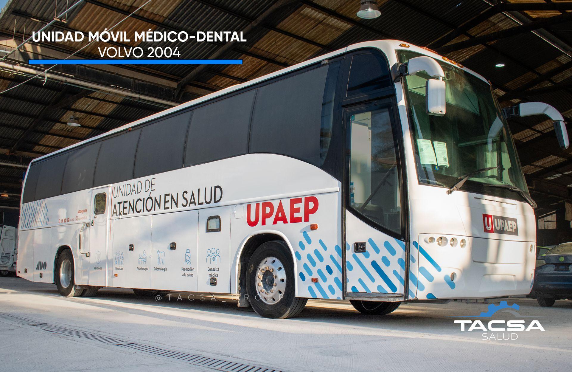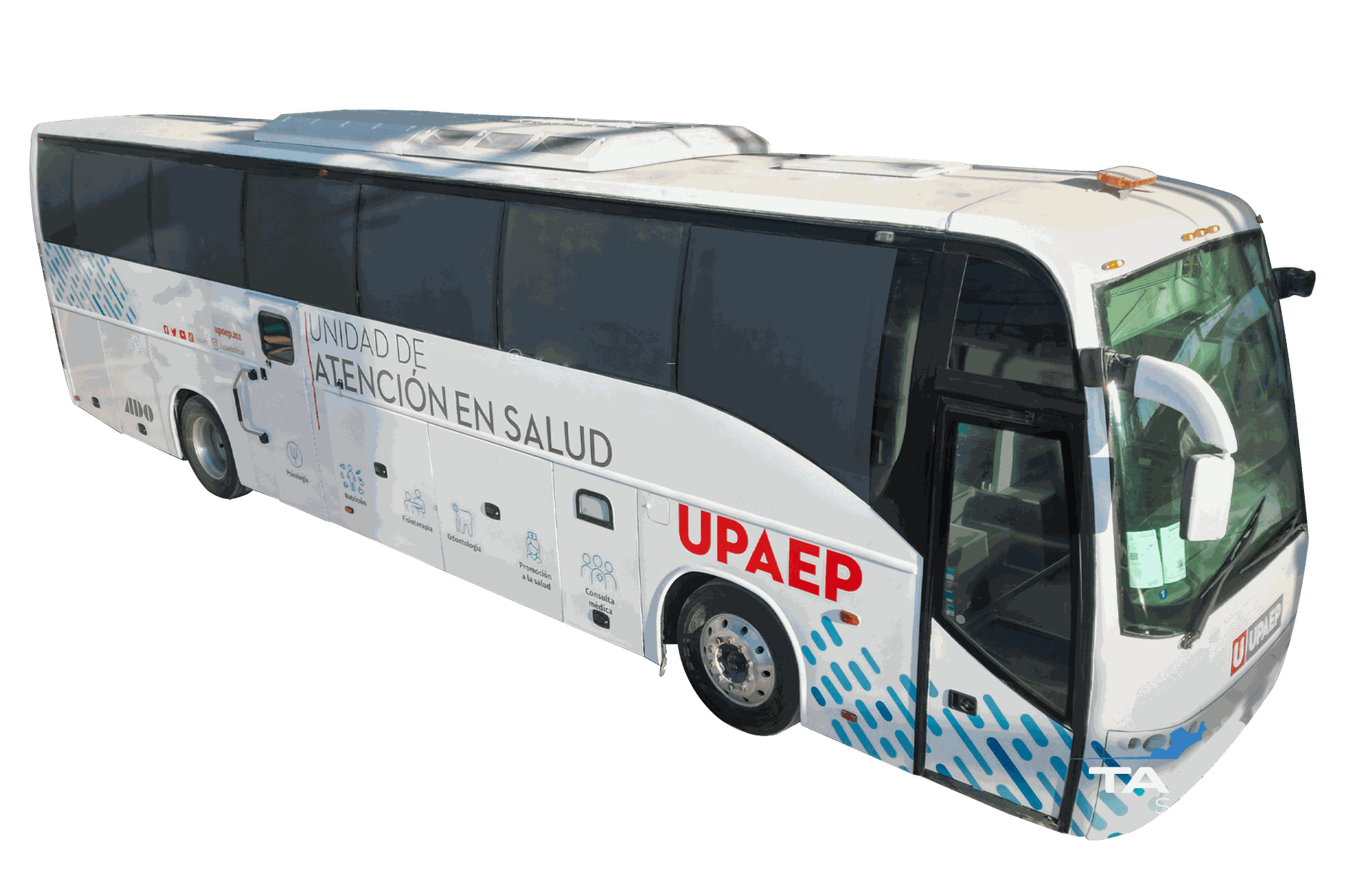 Unidad médica móvil equipada con variedad de consultorios especializados, médicos generales y consultorio dental para la atención de la ciudadanía.