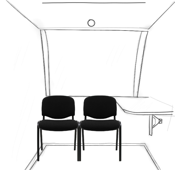 Fabricada con un escritorio anclado al piso para la fácil elaboración de notas clínicas, informes médicos, y recetas.