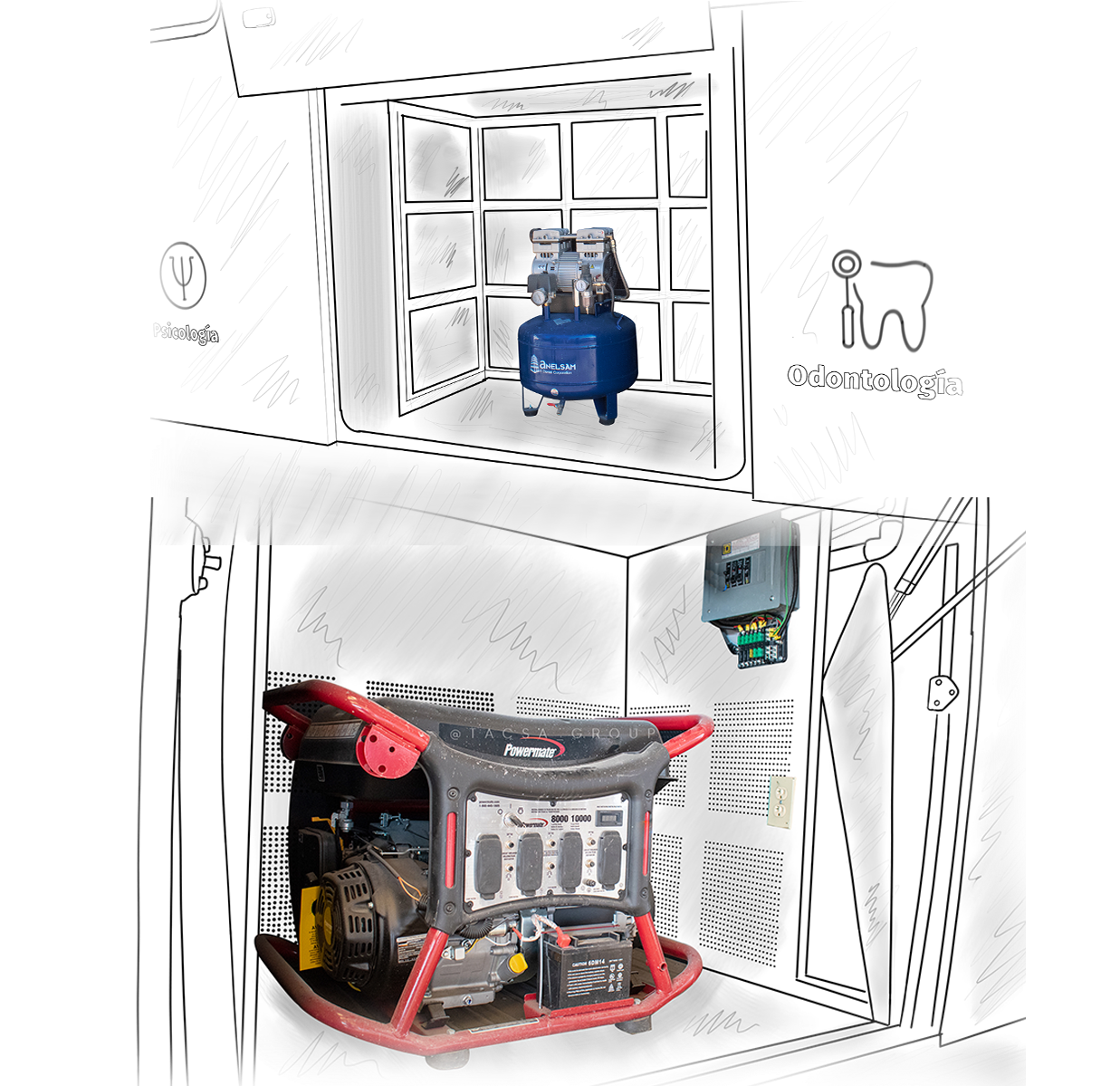 Equipada con generador de luz y centro de carga para otorgar energía a la unidad.