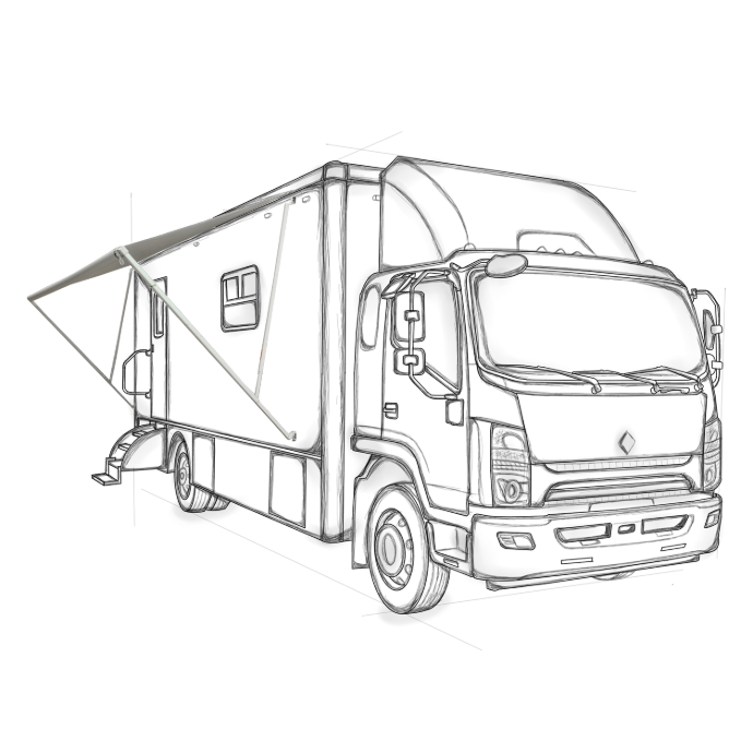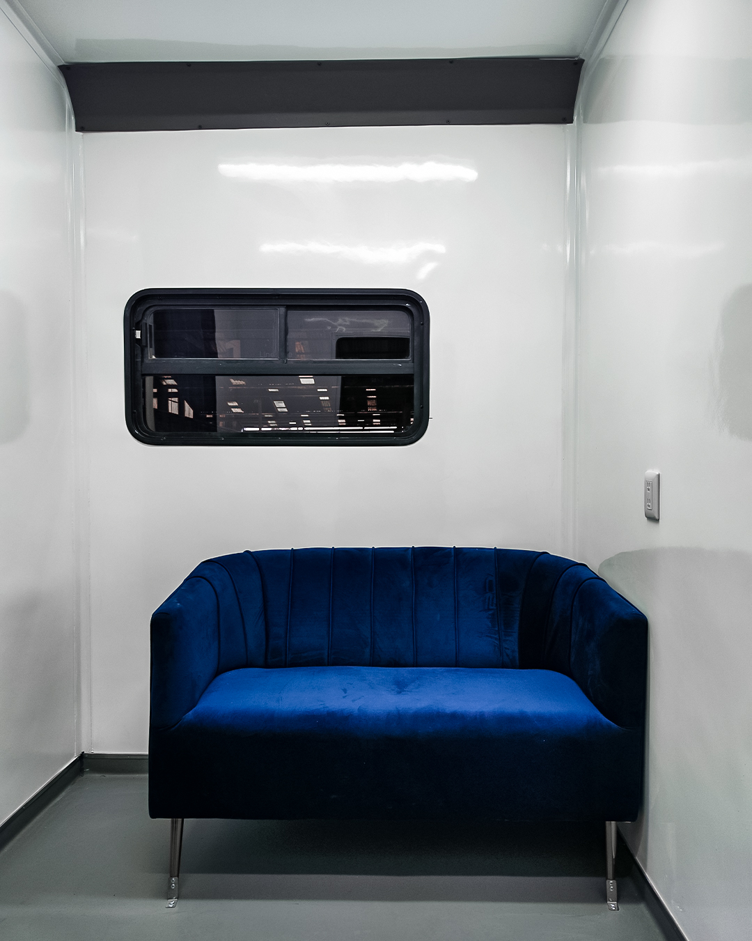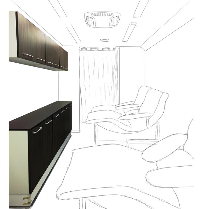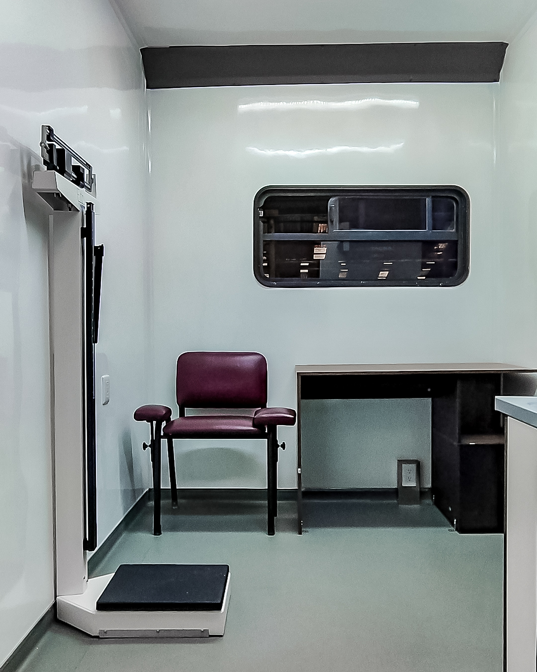 Fabricada con escaleras para facilitar el acceso a los consultorios, que pueden retenerse fácilmente dentro del vehículo.