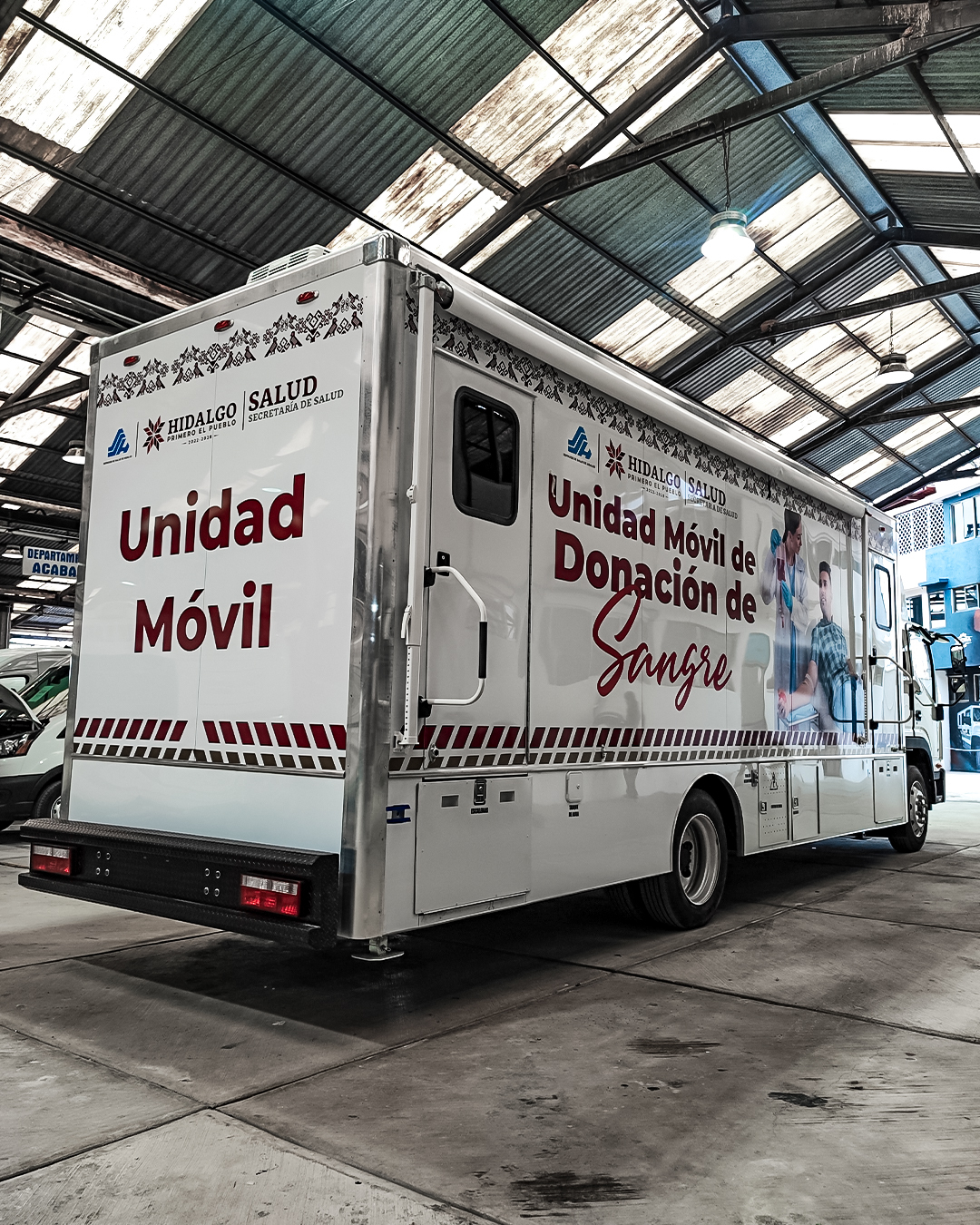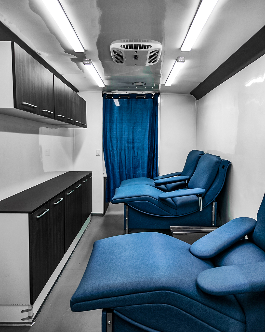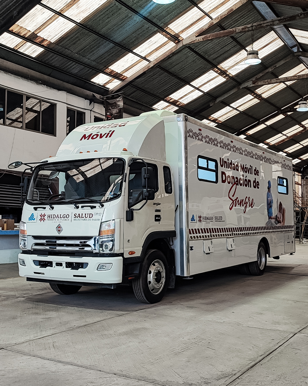 Unidad móvil de donación de sangre equipada para la recolección segura de hemoderivados