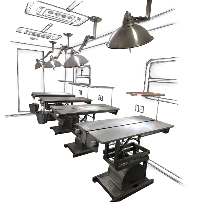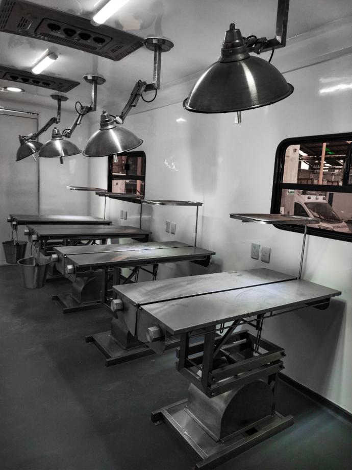 Cuenta con 4 mesas de cirugia veterinaria para la facil atencion a perros y gatos.
