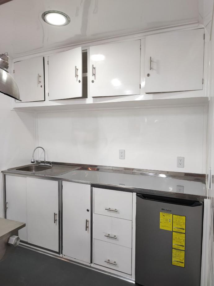 Equipada con bomba de agua, tanque de agua potable y tanque de agua residual.