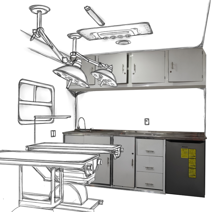 Diseñada con lamparas quirurgica utiles para la iluminacion durante la atención de las mascotas.